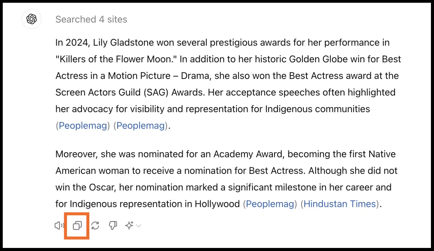 If you like ChatGPT's answer and want to share it elsewhere, you can easily copy it. Here's how: