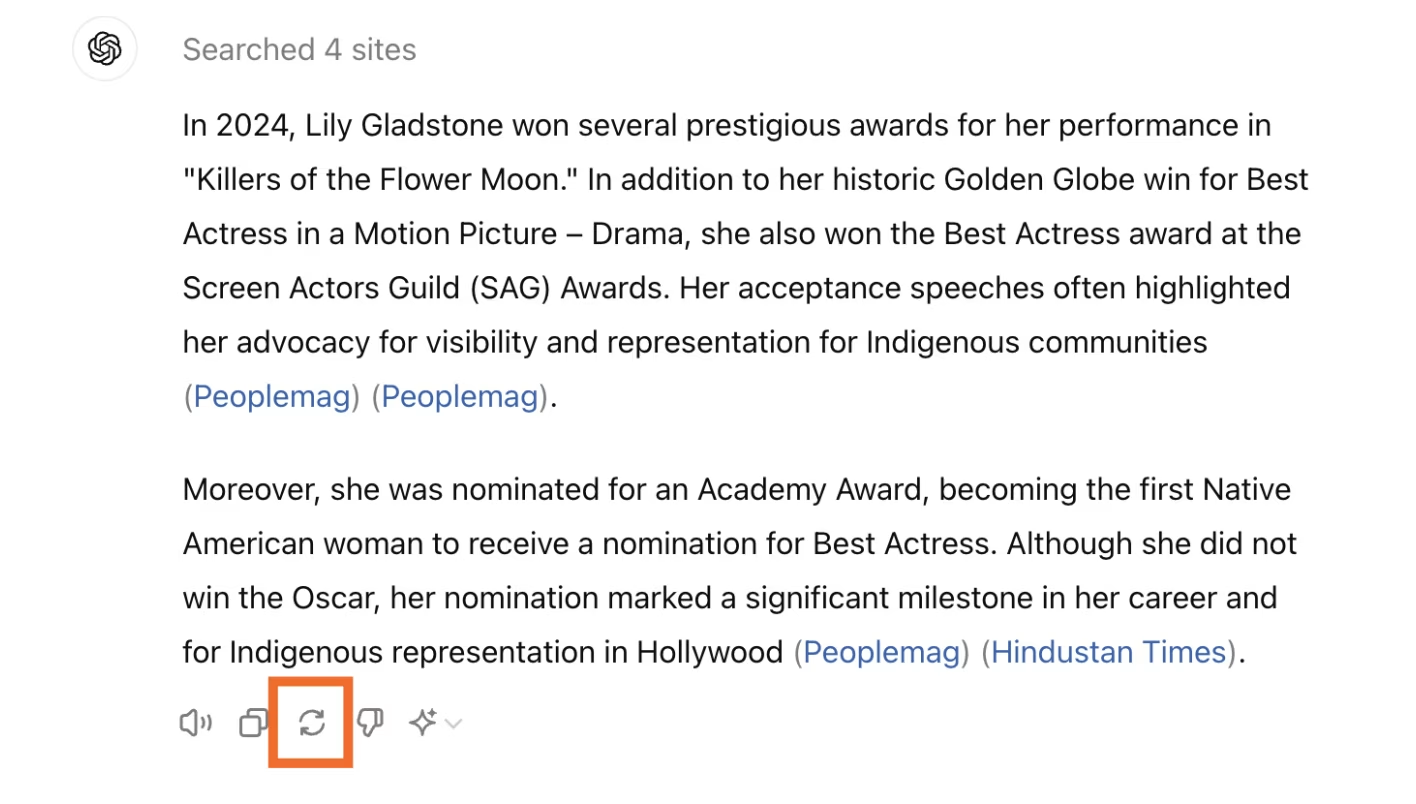 Click the Regenerate icon below the most recent response.