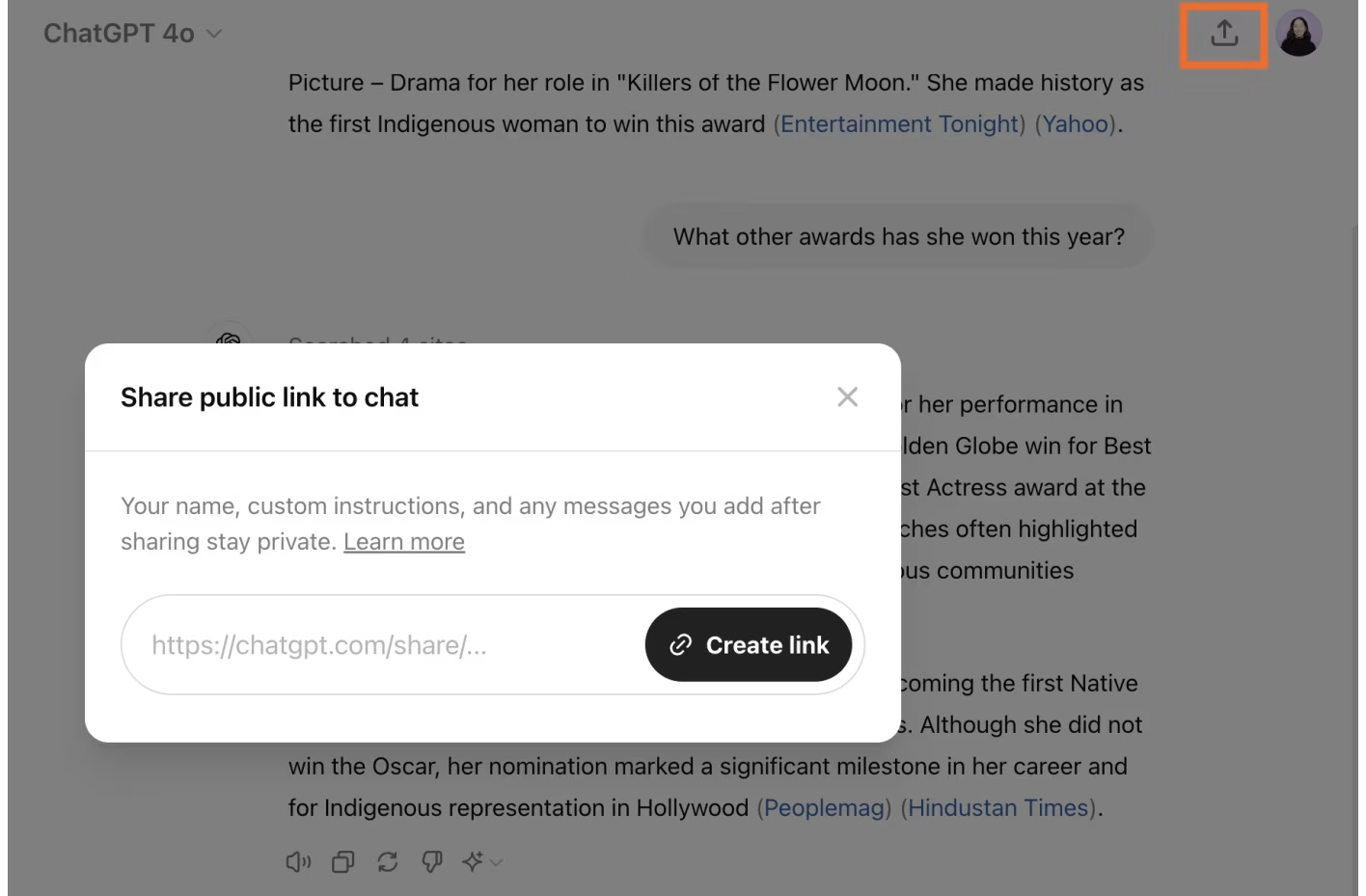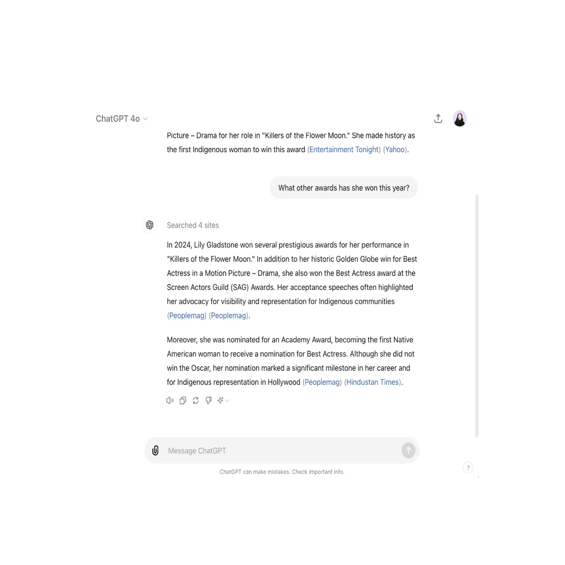 For example, after asking about an actress, I can continue with: "What other awards has she won this year?" ChatGPT will understand that I'm still referring to the same person from earlier in the conversation.